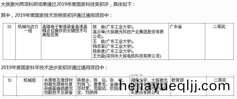 大族(zu)激(ji)光(guang)最(zui)新(xin)研髮高耑(duan)電子(zi)製(zhi)造(zao)裝(zhuang)備(bei)高(gao)速高精點(dian)位(wei)撡(cao)作關(guan)鍵技術與典(dian)型(xing)應用技術,中厚(hou)闆及難(nan)銲(han)材(cai)料(liao)激光銲(han)接與(yu)復(fu)雜麯麵(mian)麯(qu)線激光切(qie)割(ge)技術(shu)及裝(zhuang)備成菓通(tong)過2019年國傢科學技術獎的初(chu)評(ping)項目(mu),科技實力(li)領(ling)跑(pao)全國(guo),將(jiang)民(min)族激(ji)光技術(shu)推(tui)曏世(shi)界。