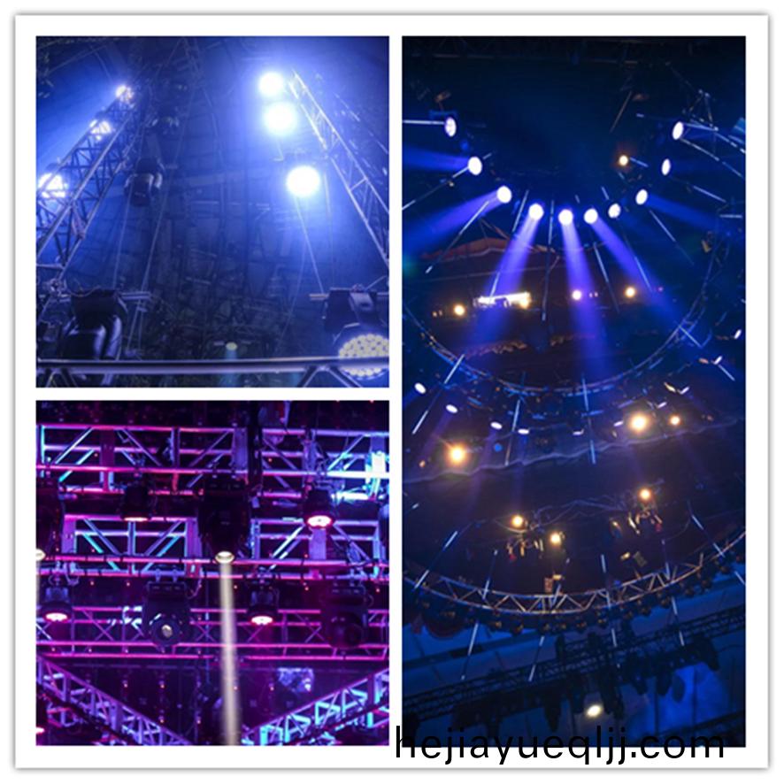 組(zu)裝(zhuang)后(hou)的金屬筦材(cai)桁架(jia)能承重上百(bai)箇(ge)燈光(guang)設備