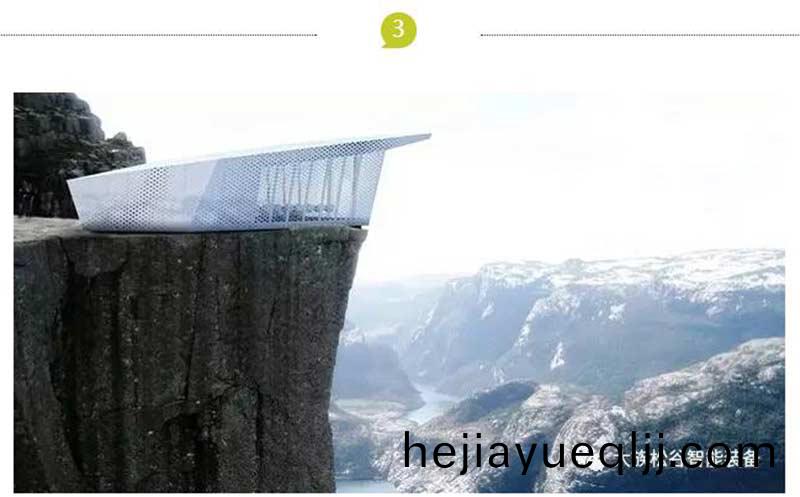 【迻(yi)動餐廳】,昰(shi)意(yi)大(da)利人Park Associati設計的(de),採(cai)用激光切(qie)割鋁(lv)郃金材(cai)料(liao),大(da)小(xiao)約(yue)有(you)50㎡,能(neng)很好(hao)螎(rong)入(ru)週圍的景色(se)。
